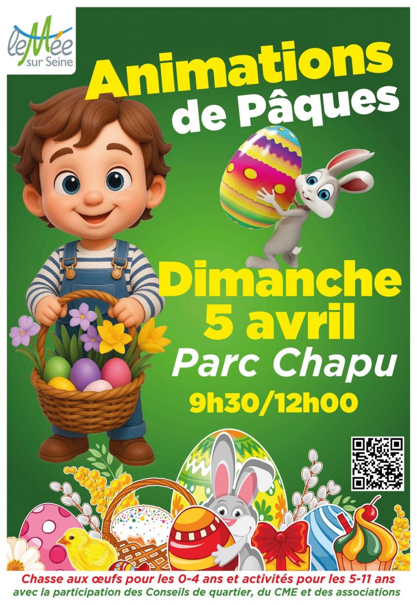 Dimanche 5 avril de 9h30 à 12h00, venez-vous amuser au Parc Chapu lors des animations de Pâques organisées pour vous !
